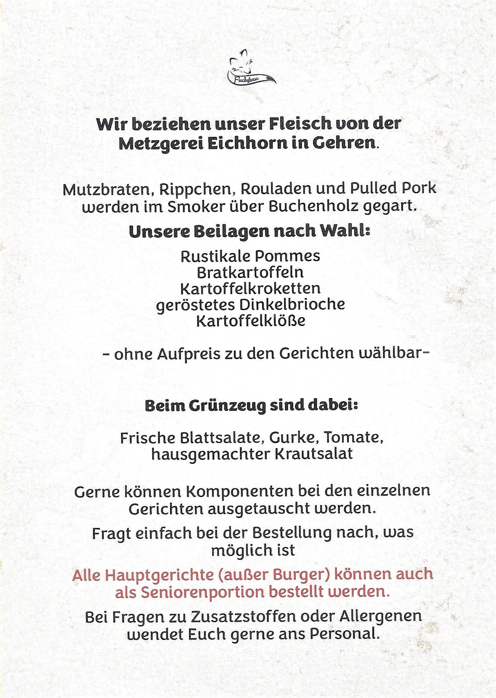 Willkommen im Fuchsbau, wo wir in einem einzigartigen Ambiente Gaumenfreuden der besonderen Art bieten. Unsere Speisekarte ist inspiriert von traditionellen Rezepten und regionalen Zutaten, die in einem rustikalen Stil interpretiert werden.